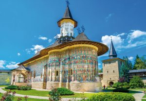 Na het ontbijt rijden we naar Agapia, ook wel het nonnendorp genoemd dankzij het Roemeens-orthodox nonnenklooster uit de 17de eeuw. In het dorp en het klooster leven ongeveer 3 à 400 nonnen samen in kleine gemeenschappen. We bezoeken Agapia ook omwille van de schilderijen van Nicolae Grigorescu. De werken van en de herinnering aan deze uiterst getalenteerde schilder zullen op onze reis meermaals tegenkomen. Grigorescu streek hier samen met de beroemde dichter Eminescu neer. Eminescu vertolkte in zijn gedichten een typische melancholie en de romantiek en alle Roemenen kunnen uit het hoofd meerdere gedichten citeren. We bezoeken het Voroneț- en het Humorklooster (begin 15e eeuw). Voroneț werd gebouwd in 1488 en bevat zowel binnen als buiten unieke schilderwerken, daterend uit 1534-1535. Men heeft gebruik gemaakt van het typische Voroneț-blauw. We overnachten in een familiaal pension aan de voet van het Rarău-gebergte.