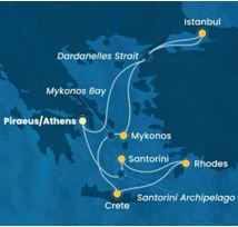 Een rechtstreekse vlucht brengt u naar Athene, waar uw droomcruise naar Istanbul en de Griekse eilanden start. We varen eerst naar Istanbul, één van de meest fascinerende steden, waar oost en west samenkomen.